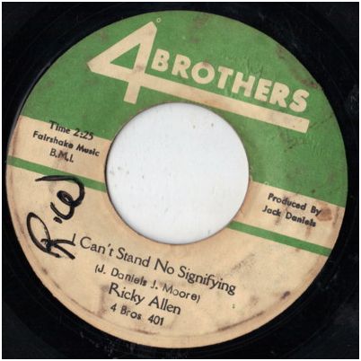 Ricky Allen recorded the booming groover “I Can’t Stand No Signifying” on Jack Daniels’ West Side-based Four Brothers label round about 1966. Both Jack Daniels and Johnny Moore (the co-writer on this track) created blues-soaked soul cuts for a number of artists, including Junior Wells, throughout the late 1960s.